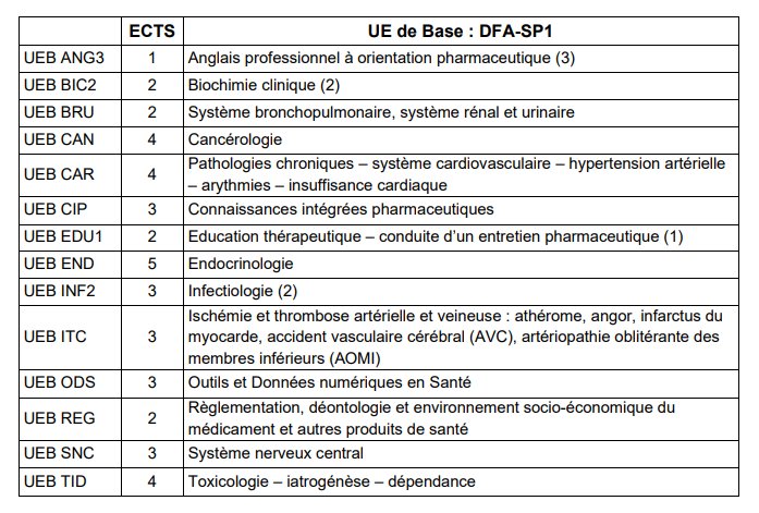 Diplôme de Formation Approfondie en Sciences Pharmaceutiques 1ère année (DFA-SP1 )